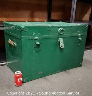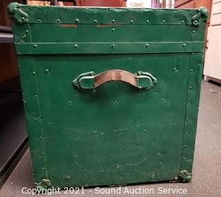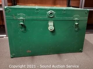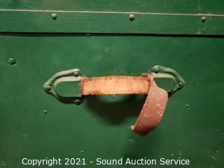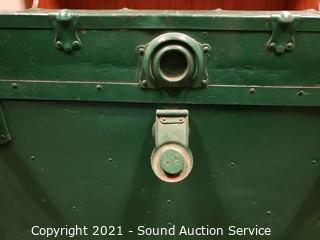Lot #0049: Vtg. Green Painted Wood Steamer Trunk