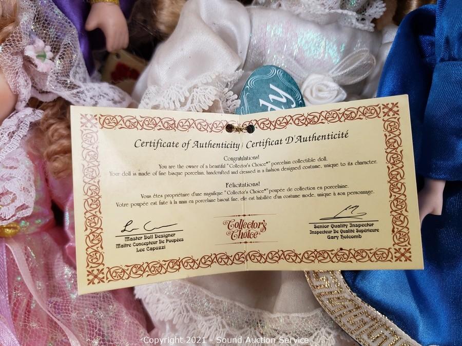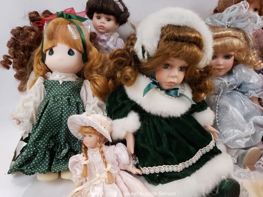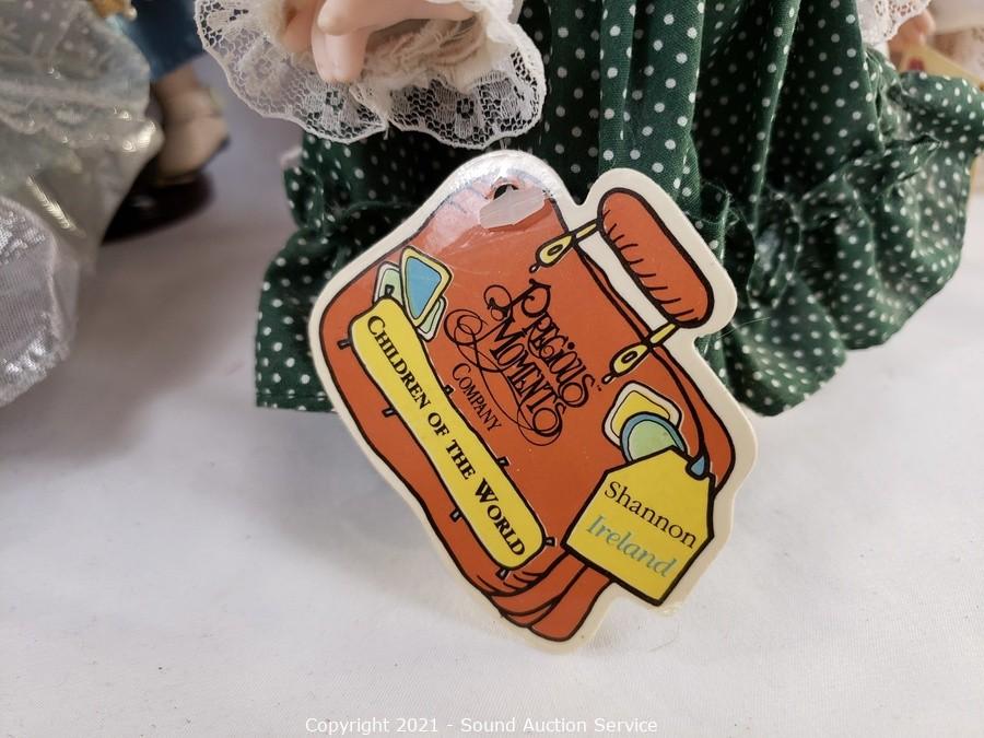 Lot Details: Mostly porcelain. Includes Precious Moments Children of the World, Collector's Choice (Wendy, Alison and other), Bradley dolls, Geppeddo, Dan Dee. A few are musical. Approx. 6" to 10" tall.