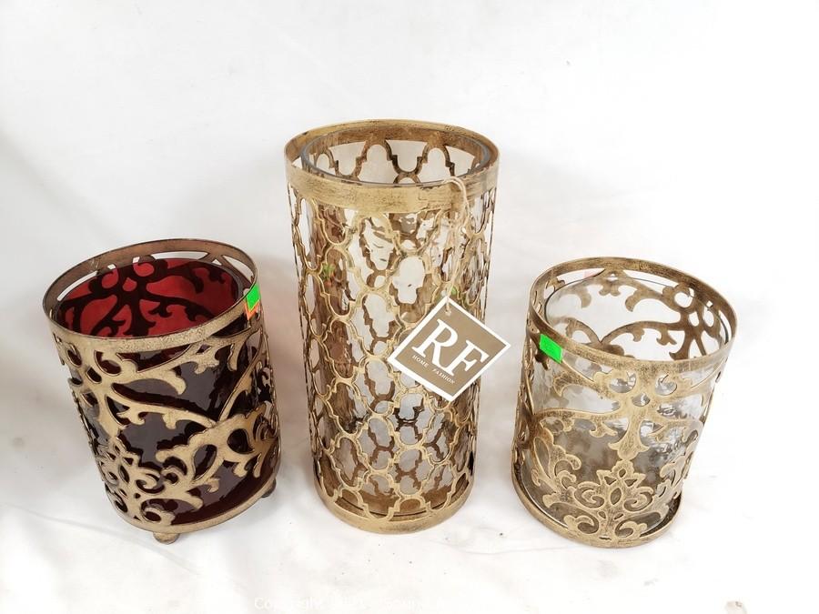 Lot Details: 7" to 10" H x 5" diameter hurricanes, 16" x 7" vase.