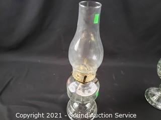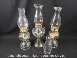 Lot #0110: 3 Oil Lamps w/4 Chimneys