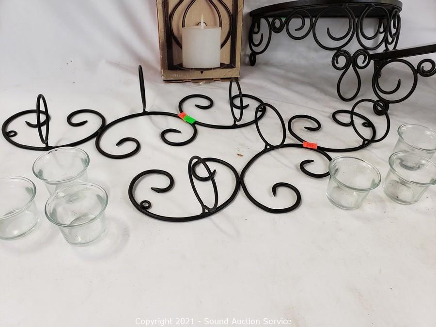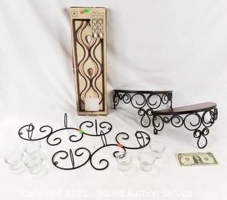 Lot #0365: 4 Decorative Candle Wall Sconces & 2 Shelves