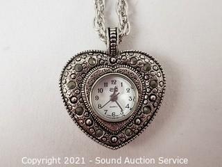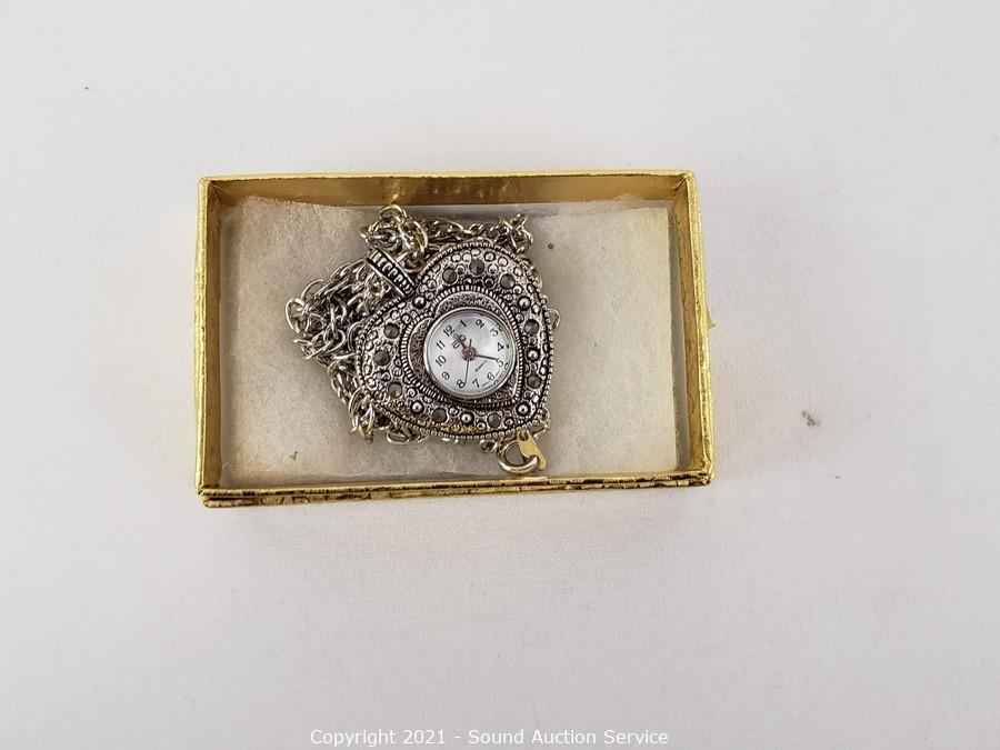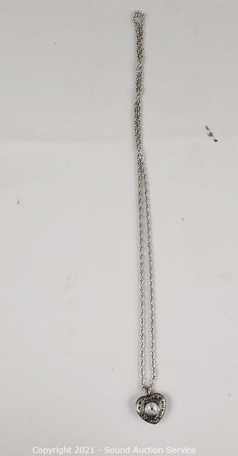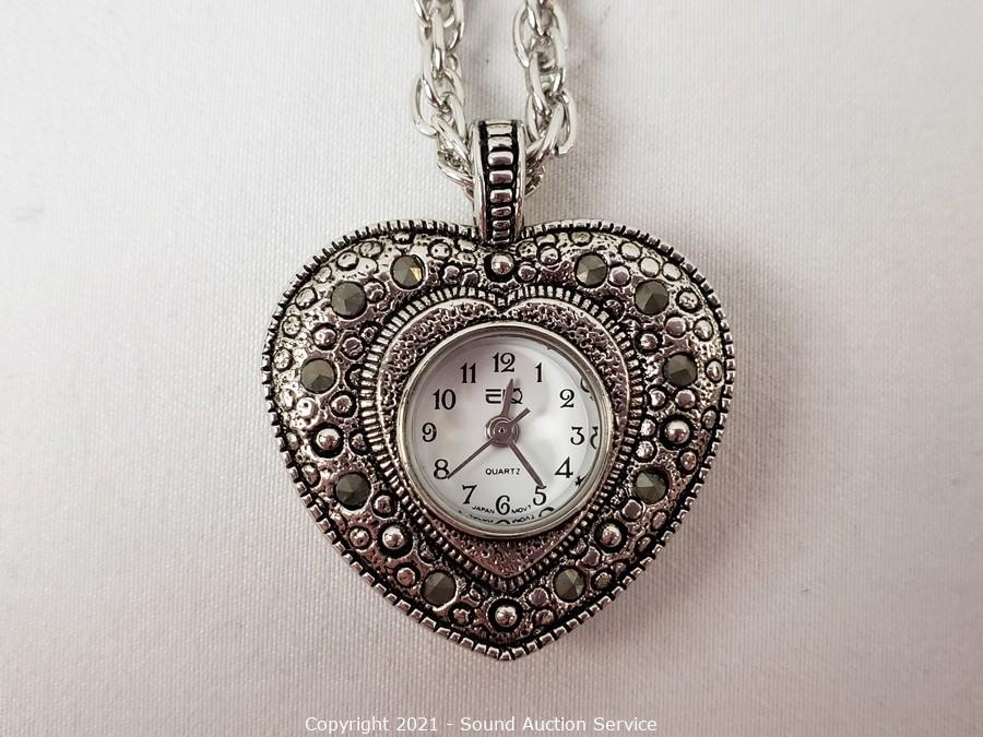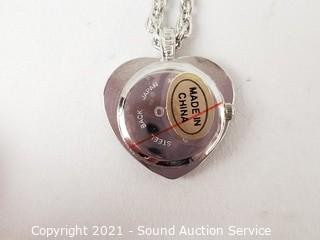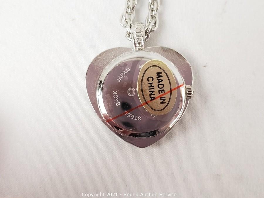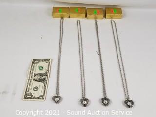 Lot #0008: 4 Like New Heart Quartz Clock Pendant Necklaces