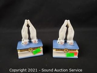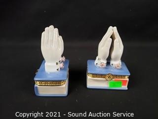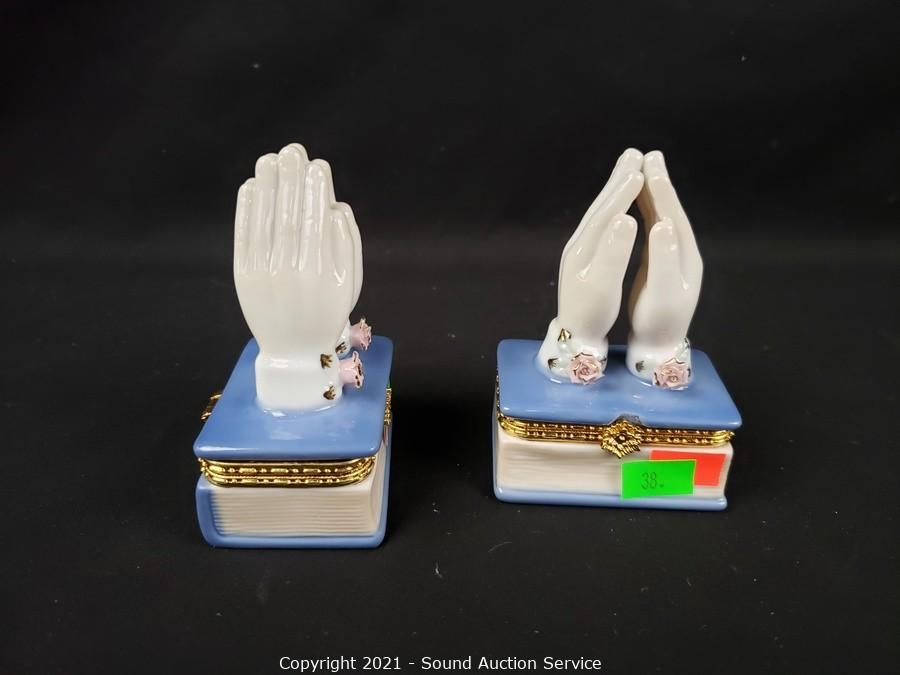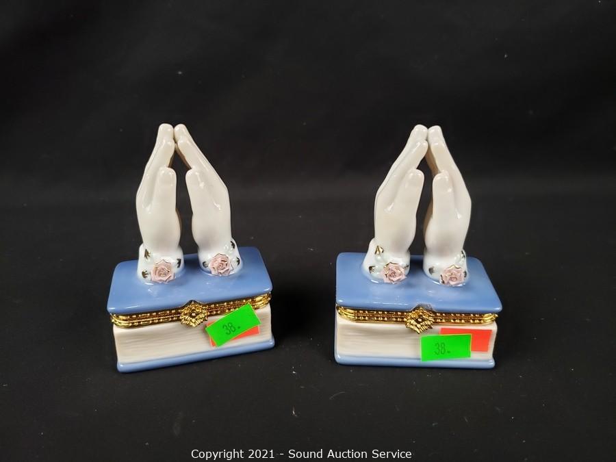 Lot #0038: 5 Composite Angels & 2 Praying Hands Trinket Boxes