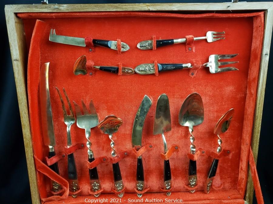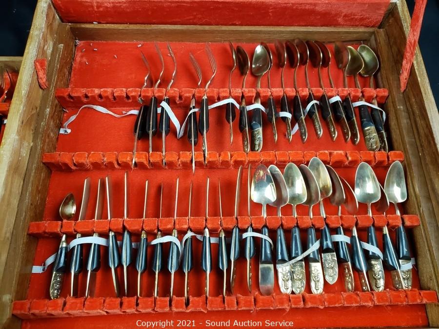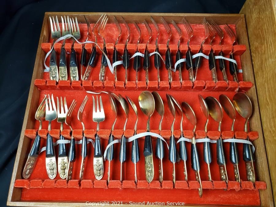 Lot #0147: 88pc Vintage Siam Brass Flatware Set w/Chest