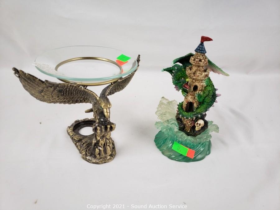 400+ Lots Including; Graded & Collectible Vintage & Antique Coins, Tons of Vintage Collectible Porcelain, Vinyl & Other Dolls, Futon Sofas, Decorative Fantasy Swords, Various Interior Accent Décor, Candle Lanterns, Sconces, Hurricanes, White Tiger Resin Coffee Table, Lamp Statuary, Large Lava Stones, Petrified Wood (Largest Approx. 120lb), Siam Brass Flatware Set, Crystal & Clear Glassware, Faux Houseplant Décor, Various Furniture & Much More!!