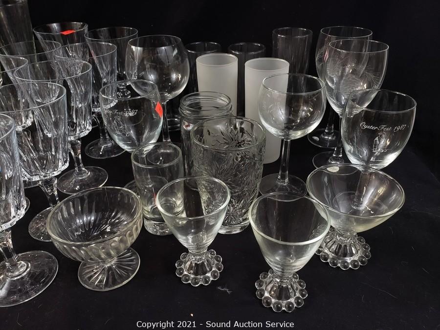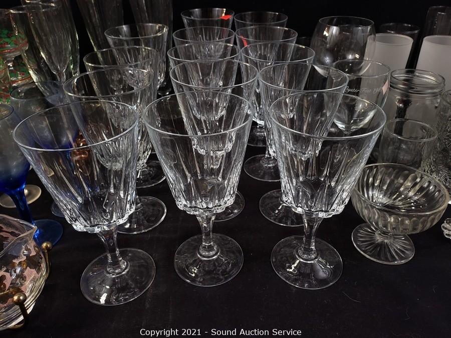 Lot #0160: Assortment of Crystal & Clear Glass Drinkware