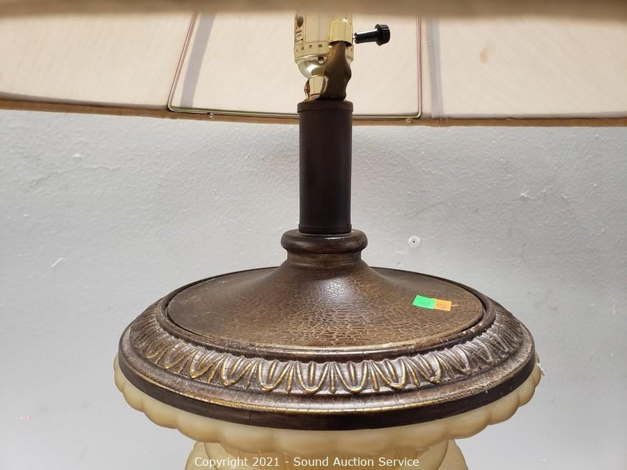 Lot Details: 32" H x 20" Dia. Shade has some staining. Works.