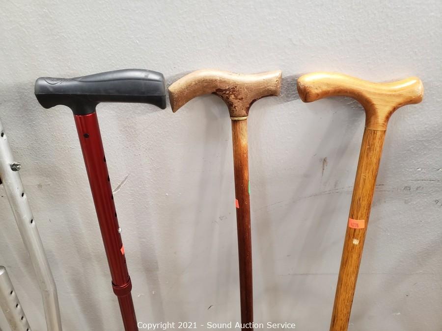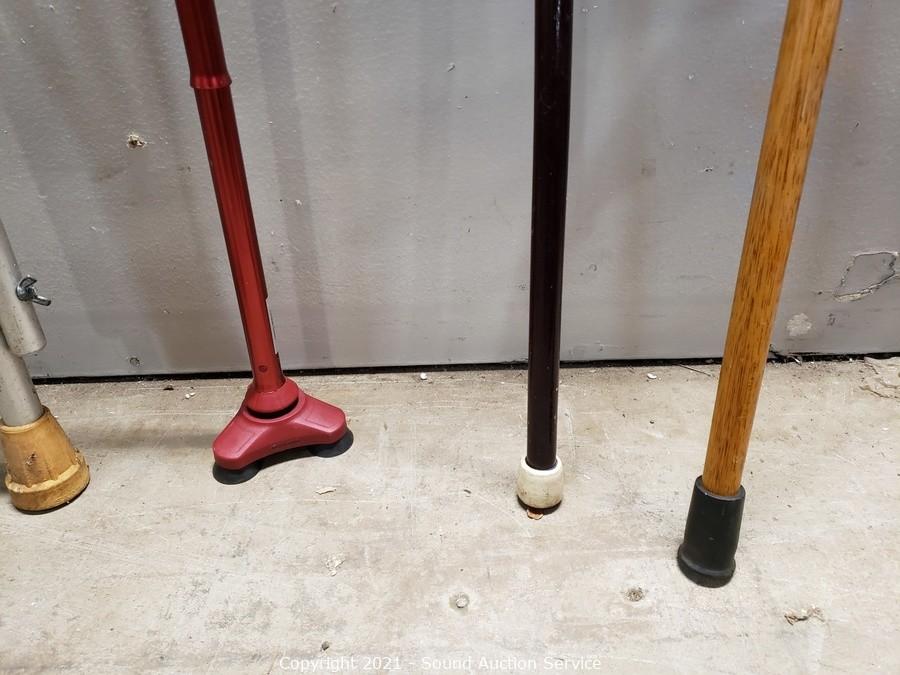 Lot Details: Canes are 32" to 41" long, one is adjustable. Walker is foldable, by Nova.
