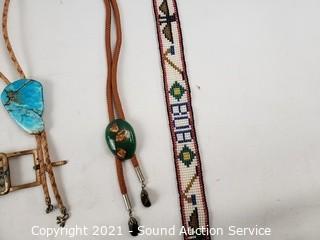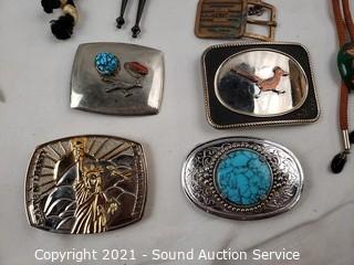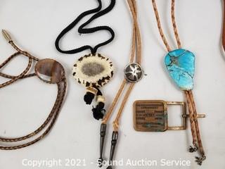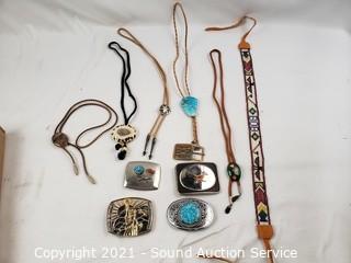 Lot #0127: Native & Other Belt Buckles, Bolos & More