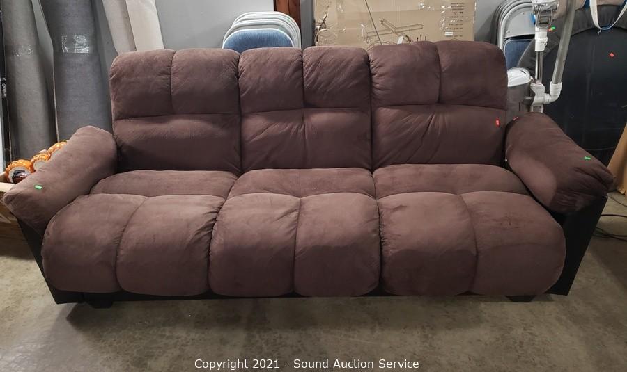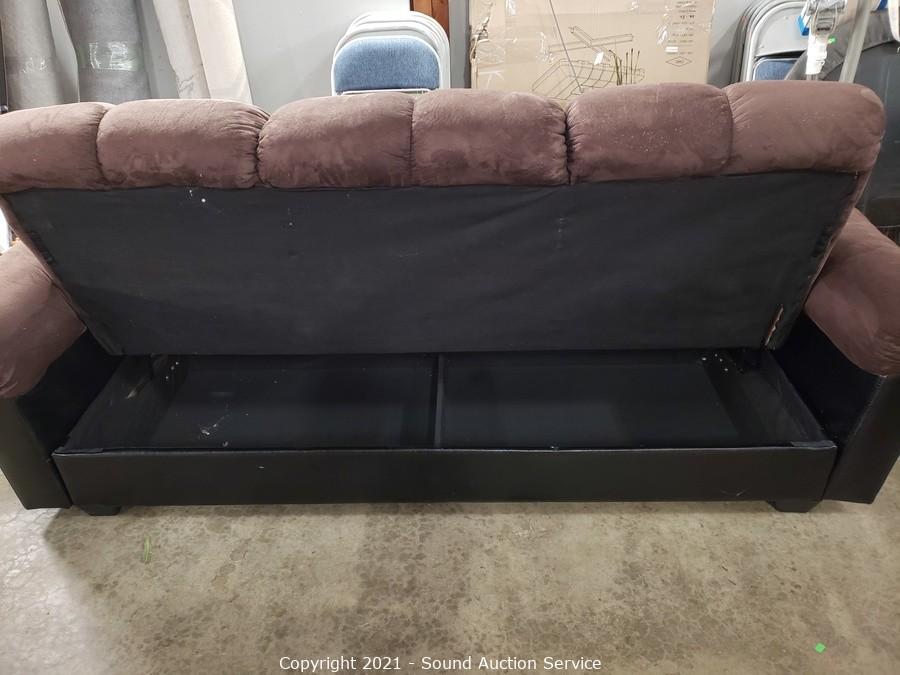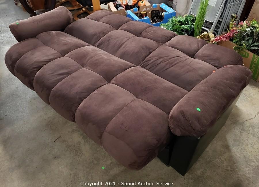 Lot #0005: Nice Brown Microfiber Fabric Futon Sofa