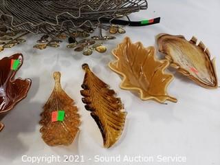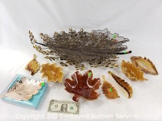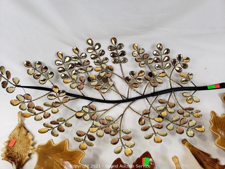 Lot Details: Art glass, ceramic & metal art. Approx. 4" x 7" to 26" x 16".