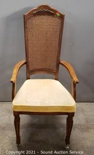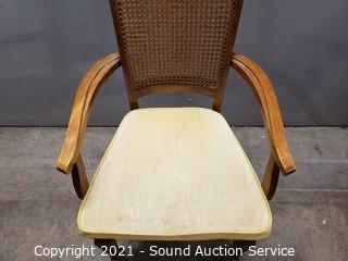 Lot #0170: Vintage Cane Back Rolling Accent Chair w/Pillow