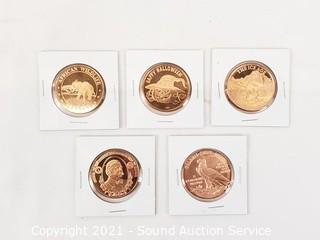 Lot #0395: (5) 1oz .999 Fine Copper Medallions