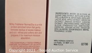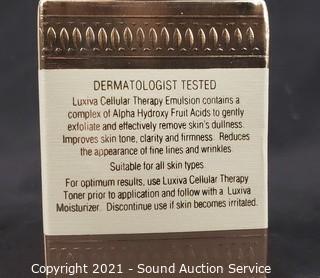 Lot Details: 5.5oz Milky Freshener, 1oz Luxiva Cellular Therapy Emulsion, 2oz Luxiva Shine Control Hydrator, 2.5oz Luxiva Micro-Refiner, 6oz Luxiva AHA Toner. 1 sealed, others full, unused.