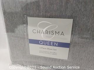 Lot #0448: 6pc Charisma Grey Queen Polyester Sheet Set