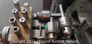 Lot Details: Model 8520, Serial 006274. Works. Precision milling system, articulating light. 67" H x 36" x 36". Comes with drill bit chuck & 7 Royal 1/8" to 1/2" bit chucks.