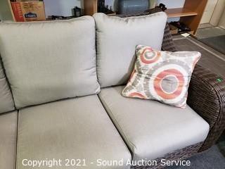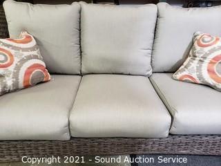Lot #0366: Like New Sunbrella Rattan Wove Patio Sofa