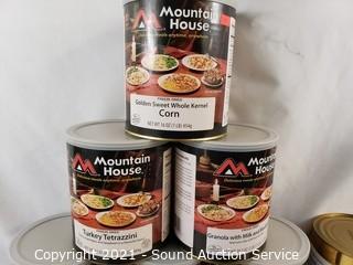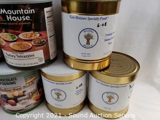 Lot Details: Sweet Garden Peas, Chocolate Pudding, Mixed Vegetables, Sweet Whole Kernel Corn, Potato Dices, Pineapple, Scrambled Eggs w/Bacon, Granola w/Milk & Blueberries, Turkey Tetrazzini, Peanut Butter Flour. A few are marked 06/08
