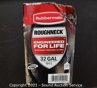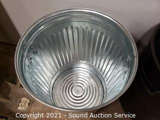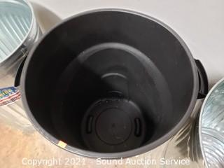 Lot Details: Plastic can is a Rubbermaid Roughneck 32 gallon, metal cans are approx. 27" T x 21" diameter.