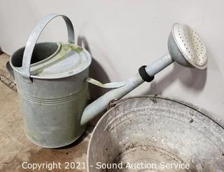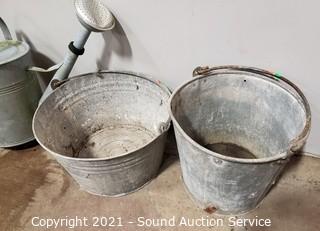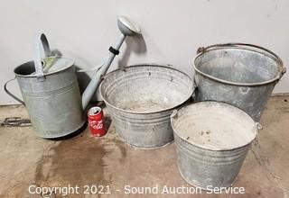Lot #0016: 3 Rustic Metal Pails & Galvanized Watering Can