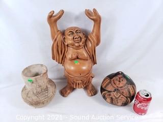 Lot #0291: Buddha Sculpture, Carved Gourd & Pottery Vase