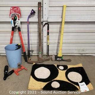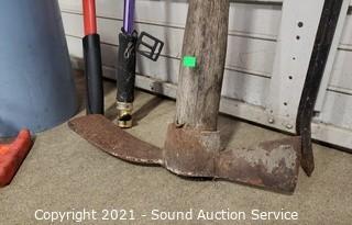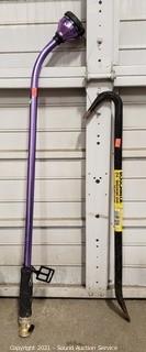 Lot Details: Pickaxe, watering wand, crow bar, loppers, boot cleaner mat, sprinklers.
