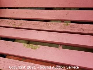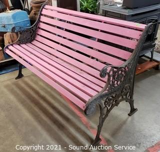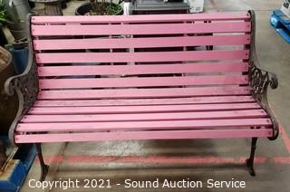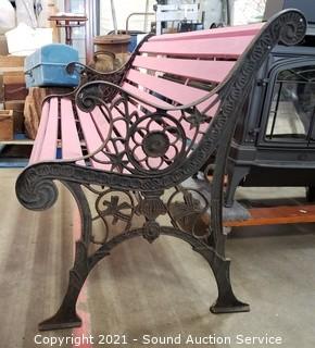 Lot #0380: Pink Painted Wood Slat & Cast Iron 4ft Bench