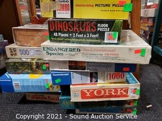 424 lots including; Beautiful Burl Wood Table, Undertakers Tool box, Dunhill Leather Extra Wide Power Recline Sofa, Solid Granite Benches, Full Body Massage Chair, New Men's & Women's Footwear, Survival Backpack, Jigsaw Puzzles & Board Games, Various Art & Other Literature, New Women's Clothing, Lawn Tractor Dump Trailer, Sewing Fabrics, Live Houseplants, Beautiful Curio Cabinet, beautiful Counter height dining Table w/6 Chairs, Area Rugs, Antique Wilson Baby Stroller Carriage, Cast Iron, Wicker Wove 2-Tier Tea Cart, Artwork, Vtg. Push Reel Mowers, Samson 63" Plasma TV, Vtg. Hatchets & Much More!!!