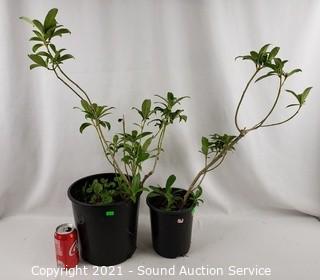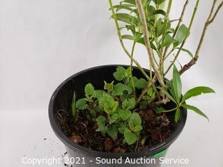 Lot Details: One has some sort of mint or balm growing inside the pot. Approx. 21" and 22" tall.