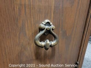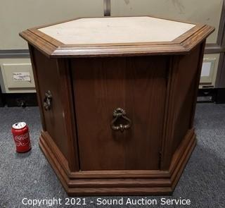 Lot #0032: Oak Tile Top Side Table Cabinet