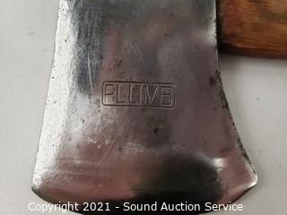 Lot Details: One hatchet is Plumb 13.5" other is unmarked 12". 6" Ulu's, one is marked GF Mfg. Co.