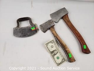 Lot #0135: Pair of Vtg. Hatchets & Ulu Tyle Choppers