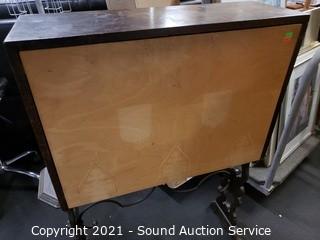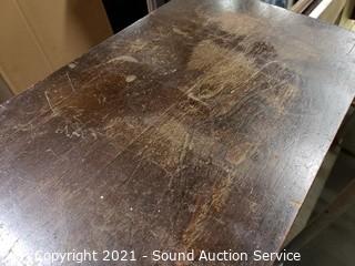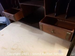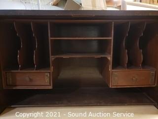 Lot Details: The drop front has been replaced, no pull hard to open. Mahogany finish other then the front, various wear, refer to photos. 42" H x 28" x 10".