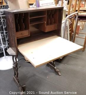 Lot #0408: Vtg. Drop Front Secretary Cabinet