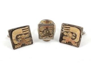 Lot #0060c: 18k Gold Over Sterling Cufflinks & Ring TW: 20.5g