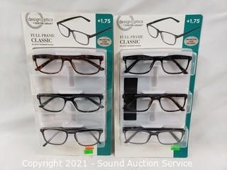 Lot #0390: 6 Pairs Design Optics +1.75 Reading Glasses
