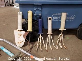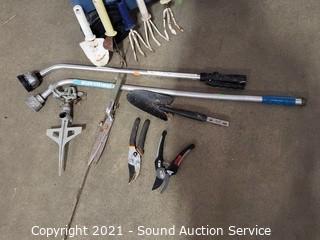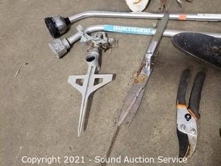 Lot Details: 14" H x 24" x 14" cart. Cultivators, watering wands, hand shovels, sprinklers shears.
