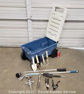 Lot #0062: Garden Cart w/Various Garden Tools
