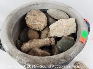 Lot #0129: Handcrafted Pottery Planter w/Various Stones