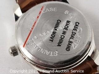 Lot Details: All need new batteries. Comes with a replacement 13mm leather band.