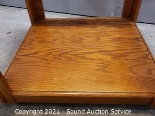 Lot #0387: Oak Glass Top 2-Tier Side Table