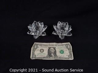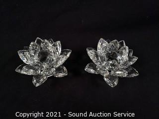 Lot #0252: Pair of Crystal Prism Lotus Decor