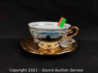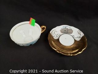 Lot Details: One cup has a broken handle, one saucer has a small chip.