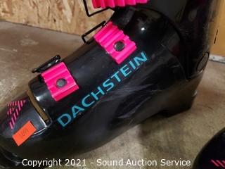 Lot Details: 2 Redline Kidder Combo 63" x 7" & 1 O'Brien Exhibition II 62" x 6. Dachstein Ski boots with travel rack S: 27.5, inside is very dirty. Ski's have various wear.