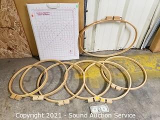 Lot #0315: 7 Embroidery Hoops & Fabric Cutting Mat