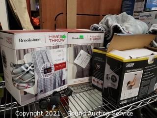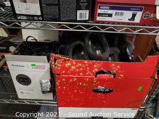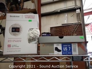 Lot Details: Shark Navigator, heated throws, Waterpik sonic toothbrush, ladies boots, window fans, LED security lights & more. Cart NOT included.