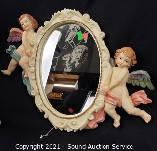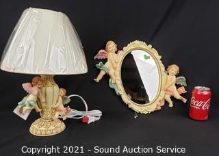 Lot #0049: Decorative Cherub Lamp & Mirror