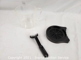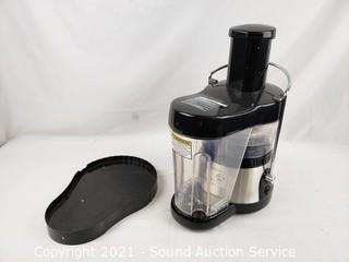 Lot Details: Includes large juicer & small blender (both work), cleaning brush, 2 to-go bottles w/lids, measuring cup, instructional DVD, drip tray, manuals & recipe guides.
