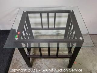 Lot #0014: Metal Base Beveled Glass Top Side Table