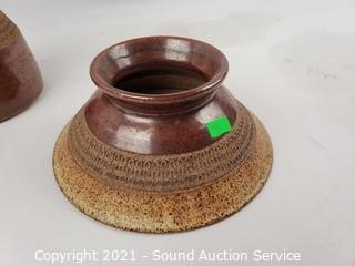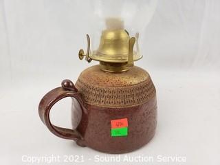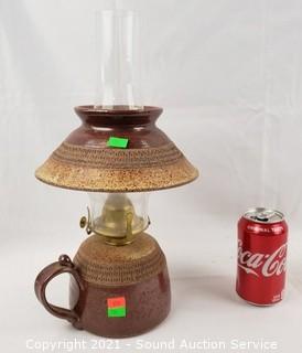 Lot #0198: Signed Art Pottery Oil Lamp w/Chimney & Shade